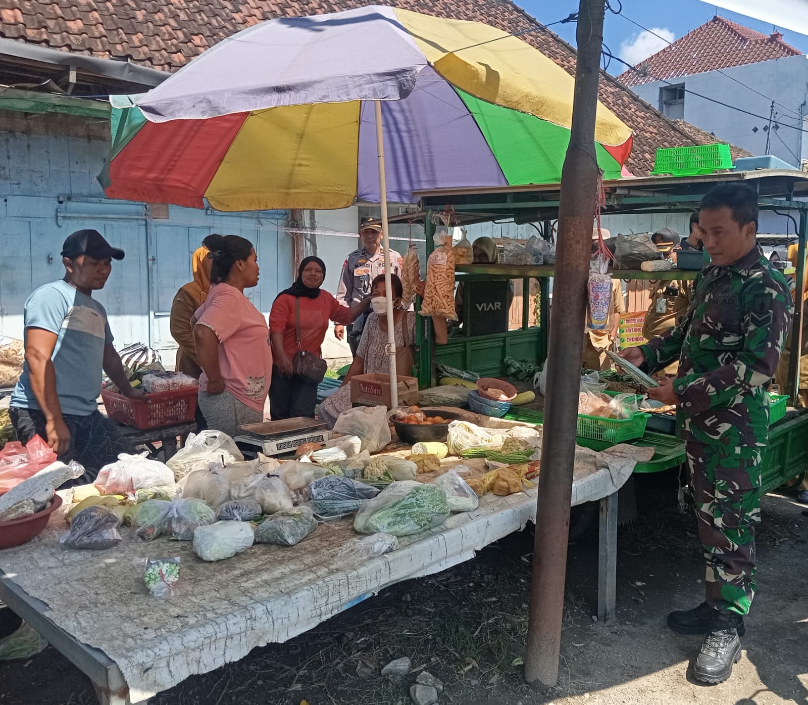 MMCNEWS.ID | Sertu Prayitno adi utomo, Babinsa Koramil 0814/07 Kabuh, Kodim 0814/Jombang, melaksanakan pengecekan ketersediaan harga sembako secara langsung di pasar tradisional Kecamatan Kabuh,Kabupaten Jombang, Senin (30/3/2026)