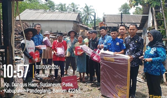 Pandeglang | MMC – Kampung Siaga Bencana (KSB) Kecamatan Patia, Kabupaten Pandeglang, menyalurkan bantuan logistik kepada korban kebakaran rumah yang terjadi di Kampung Dungushaur Rt-RW 018/004, Desa Surianeun, Kecamatan Patia, Kabupaten Pandeglang – Banten.senin (3/3/2026).