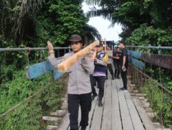 Kapolres Lahat AKBP Novi Edyanto SIK.MIK, yang diwakili Waka Polres Kompol Liswan Nurhapis SH, dan didampingi Kabag Ops Kompol Sulis Pujiono SH, Kapolsek Merapi Barat Iptu Candra Kirana SH.MH memimpin kegiatan gotong royong bersama masyarakat perbaikan jembatan gantung desa Negeri Agung kecamatan Merapi Barat yang menjadi Akses Vital Warga