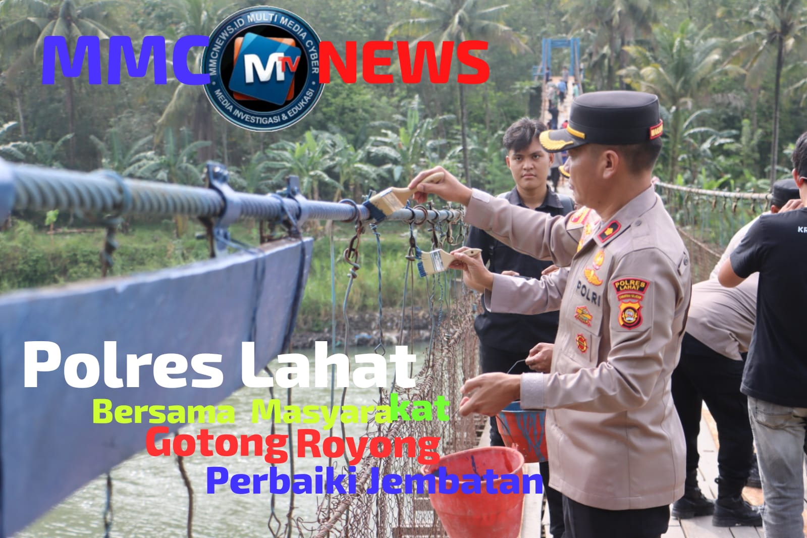 BERSAMA MASYARAKAT POLRES LAHAT PERBAIKI JEMBATAN GANTUNG SEBAGAI AKSES VITAL WARGA