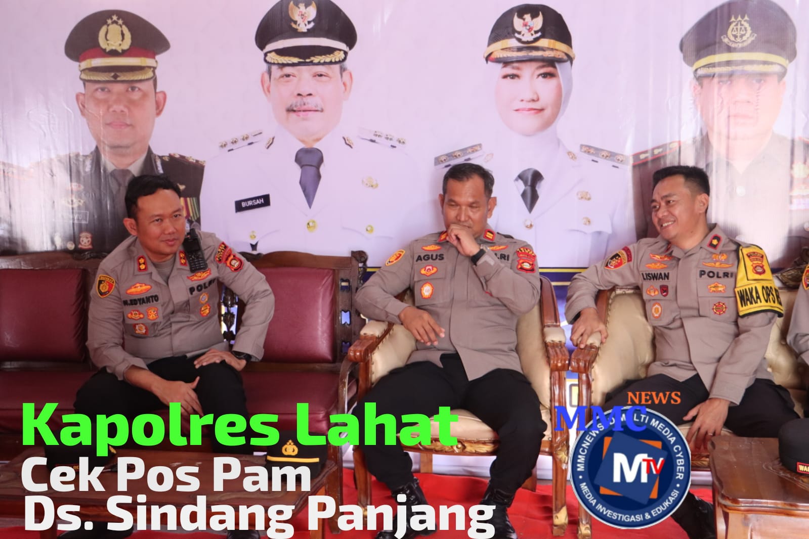 Kapolres Lahat AKBP Novi Edyanto SIK.MIK, yang di dampingi Waka Polres Kompol Liswan Nurhapis SH, Kabag Ops Kompol Sulis Pujiono SH, kabag Log Kompol Nassarudin SH. MH, Kasiwas AKP Candra Wibawa SH, Kasi Propam AKP Edwar Gultom, Kasat Lantas Iptu Dr.Jhoni Alber SH.MH.MM.MSi melakukan pengecekan dan kunjungan ke Pos Pam Sindang Panjang kecamatan Tanjung Sakti Pumi Kab.Lahat.