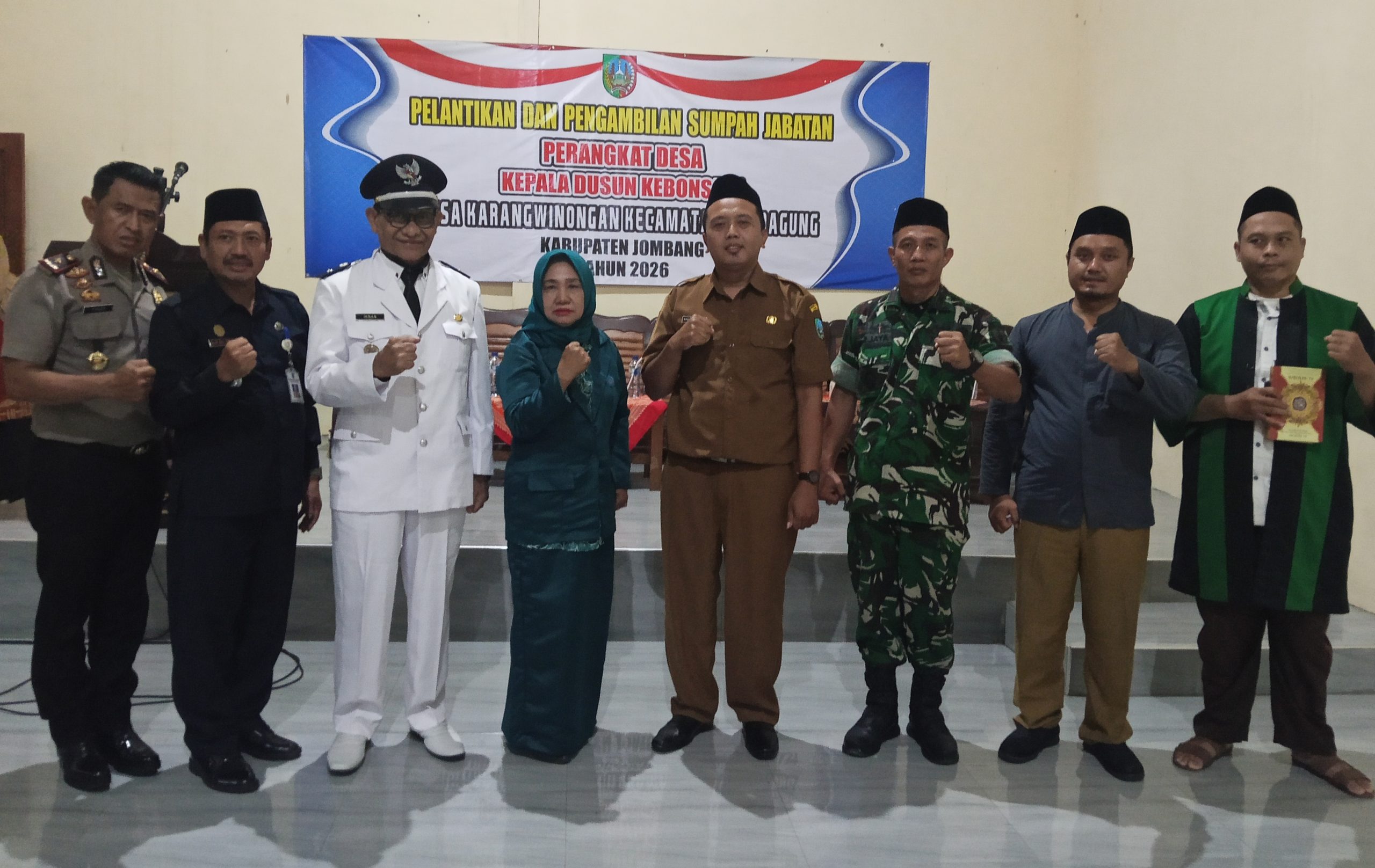 MMCNEWS.ID | Malam yang penuh khidmat menyelimuti Balai Desa Karangwinongan, Kecamatan Mojoagung, Jombang, Selasa (3/3/2026). Di bawah sorotan lampu gedung serbaguna, sebuah babak baru dimulai bagi Pemerintah Desa Karangwinongan dengan dilantiknya perangkat baru yang siap memperkuat barisan birokrasi tingkat dusun.