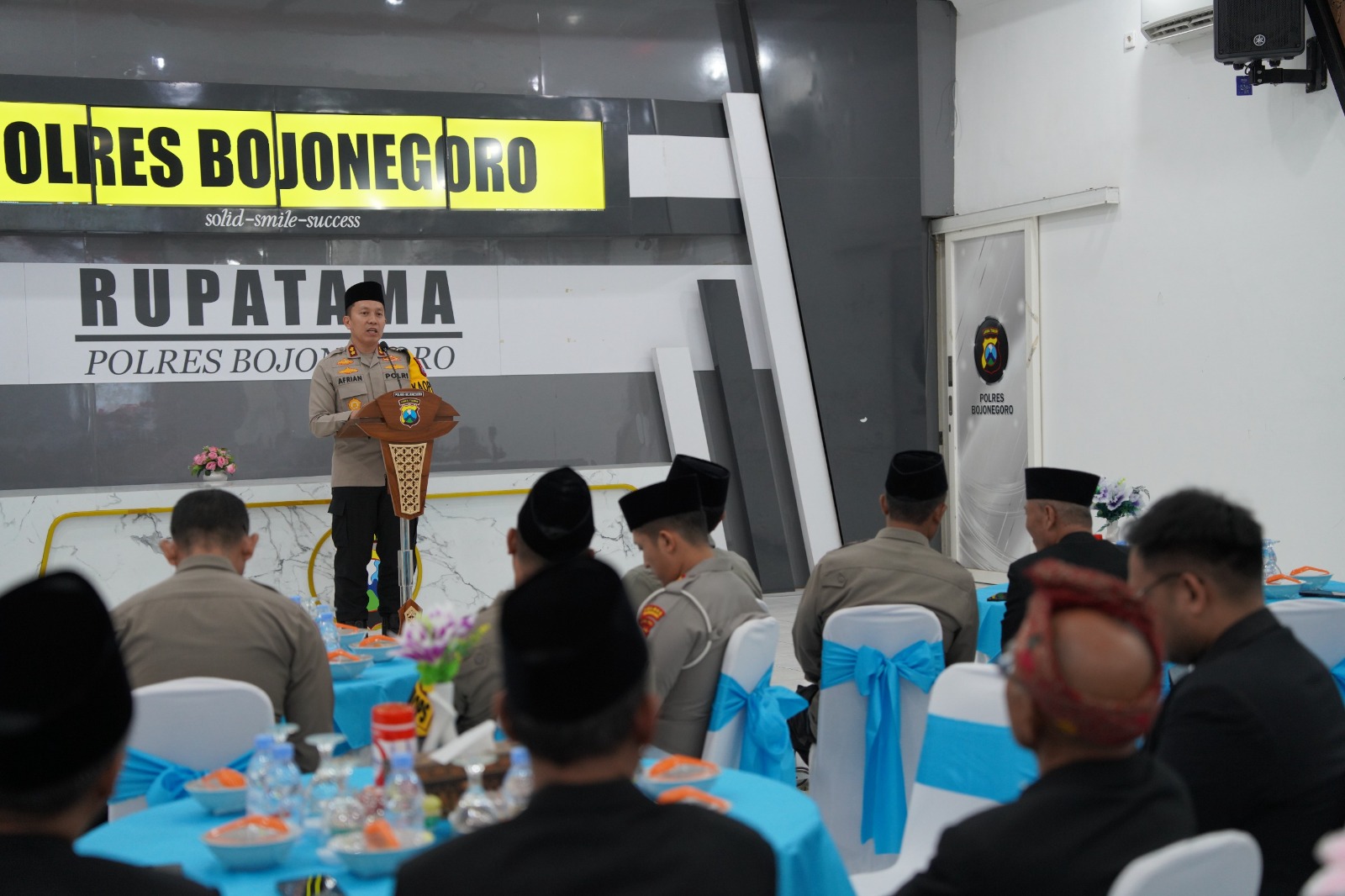 Kapolres juga mengajak seluruh pihak untuk senantiasa mendoakan agar situasi keamanan, baik di tingkat nasional maupun internasional, tetap dalam kondisi yang kondusif. Kapolres berharap Indonesia, khususnya Jawa Timur dan Kabupaten Bojonegoro, senantiasa berada dalam situasi aman, damai, dan penuh toleransi.