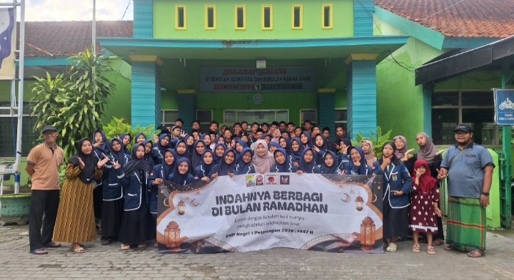MMCNEWS.ID | Suasana Ramadhan di SMP Negeri 1 Peterongan, Jombang terasa lebih hangat dengan adanya kegiatan berbagi takjil dan santunan kepada anak yatim yang digelar oleh pihak sekolah bersama para siswa.